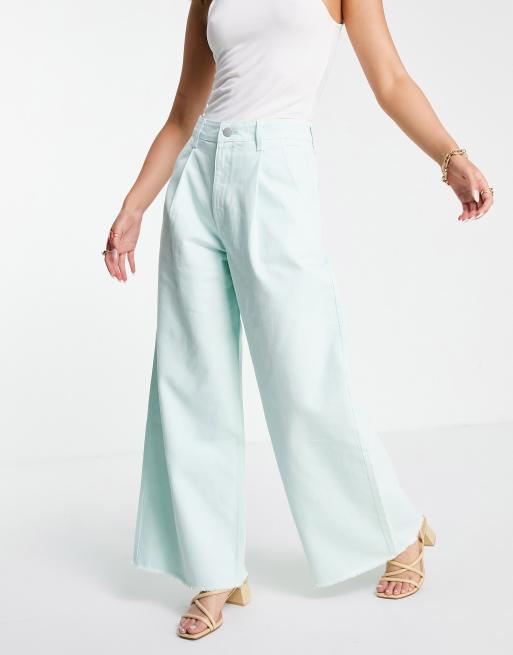 Aligne – Baumwoll-Jeans in Hellgrün mit weitem Schnitt und unverarbeitetem Saum - MBLUE