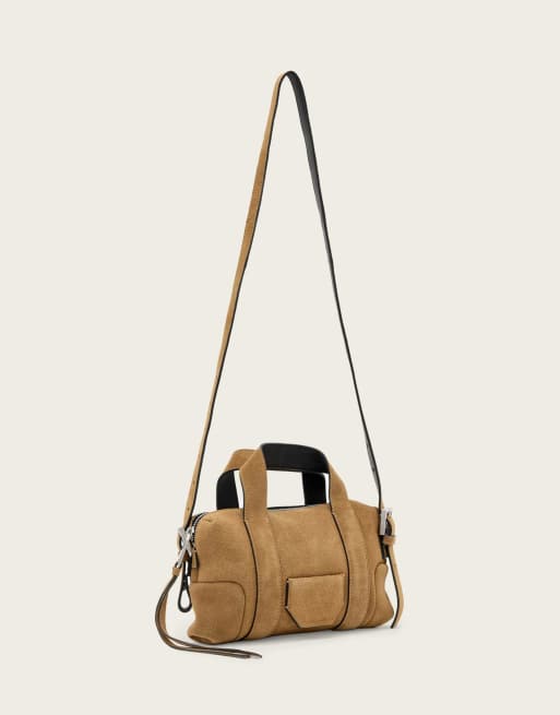 AllSaints – Ares – Kleine, kompakte Umhängetasche in Keksbraun