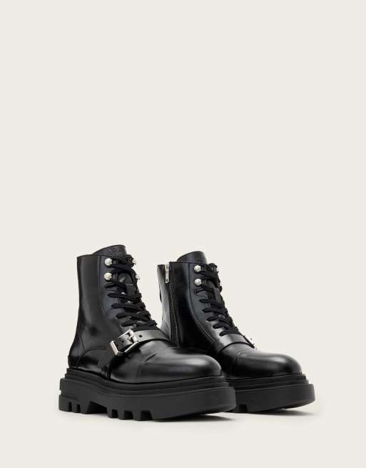 AllSaints – Astrid – Stiefel in glänzendem Schwarz