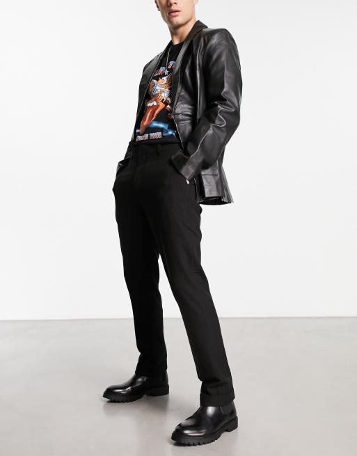 AllSaints – Barrow – Kurz geschnittene, schmale Hose in Schwarz mit Nadelstreifen