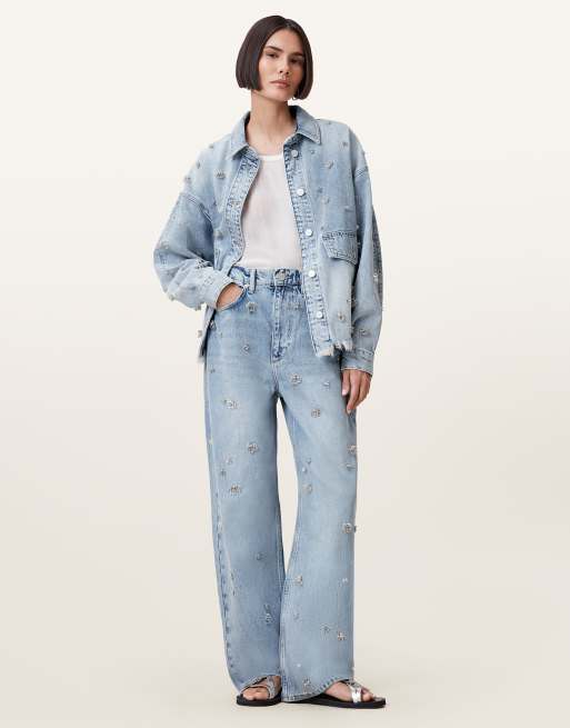 Allsaints – Blake – Verzierte Jeans in hellem Indigoblau