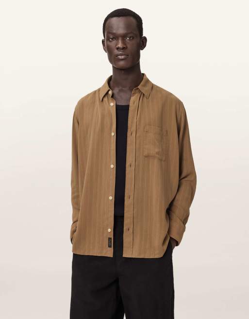 AllSaints – Carlyle – Langärmliges Hemd in Borg-Braun