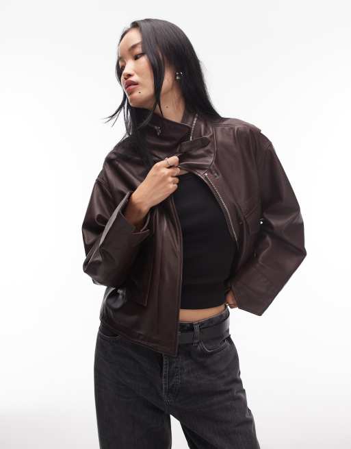 AllSaints – Clay – Lederjacke in Burgunderrot