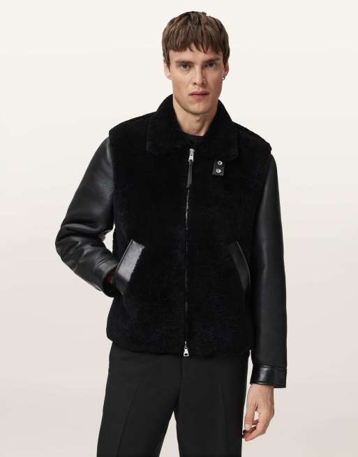 AllSaints – Conyer – Jacke aus Lammfell in Schwarz