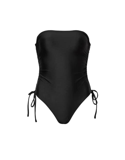 AllSaints – Court – Badeanzug in schimmerndem Schwarz