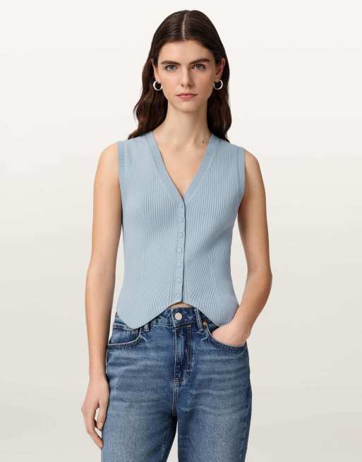 AllSaints – Cruz – Weste in Stein-Blau