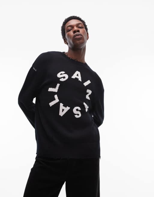 AllSaints – Diageo – Strickpullover in Schwarz mit Used-Optik und Logo