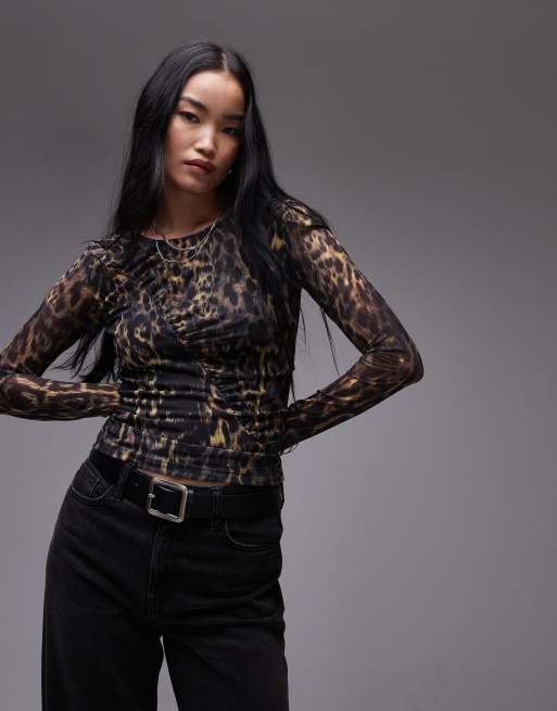 AllSaints – Edana – Langärmliges Netzstoff-Shirt mit Leopardenmuster