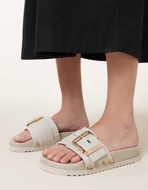 AllSaints – Ellie – Slider in Kreideweiß mit Nietenbesatz