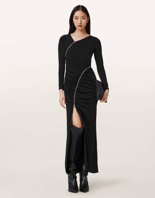 AllSaints – Elsie – Kleid in Schwarz mit Reißverschluss