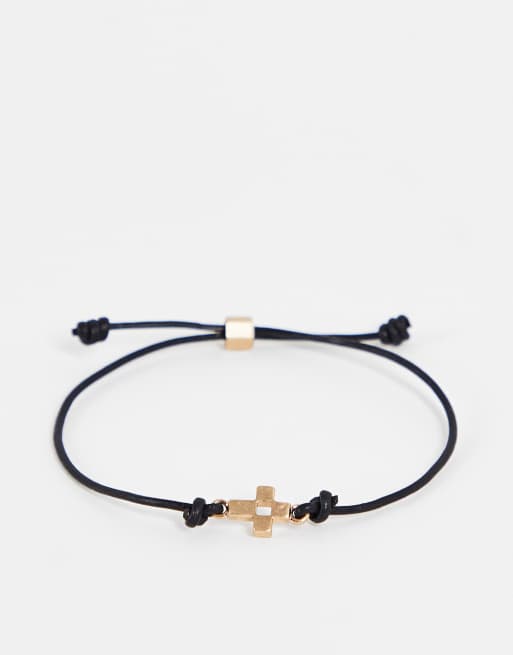 AllSaints – Freundschaftsarmband in Schwarz mit Messingkreuz