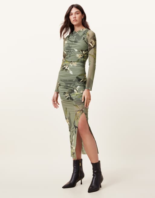 AllSaints – Hanako – Kleid aus Netzstoff in Grün