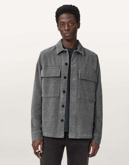 AllSaints – Hawker – Langärmliges Hemd in Hellgrau