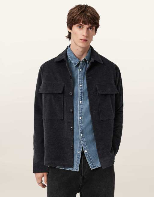 AllSaints – Hawker – Langärmliges Hemd in Nachthimmelblau