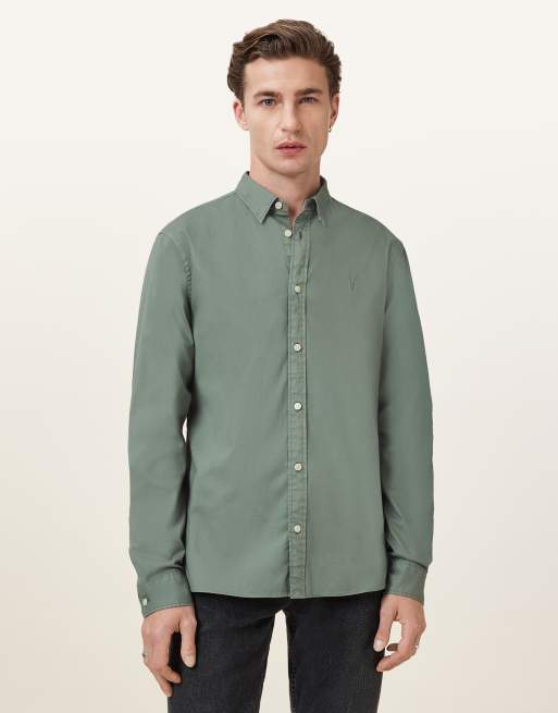 AllSaints – Hawthorne – Langärmliges Hemd in dunklem Salbeigrün