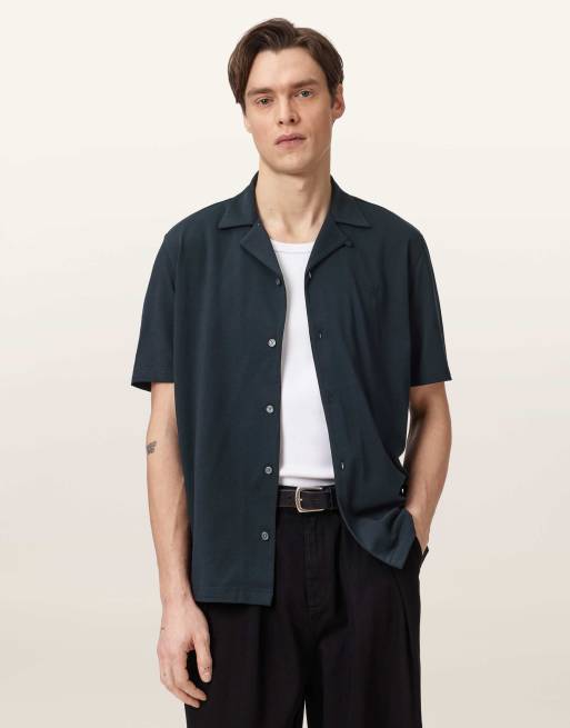 AllSaints – Hudson – Kurzärmliges Hemd in Schwarz