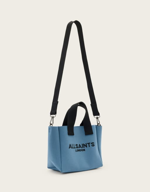 AllSaints – Izzy – Kleine Tragetasche in Stahlblau
