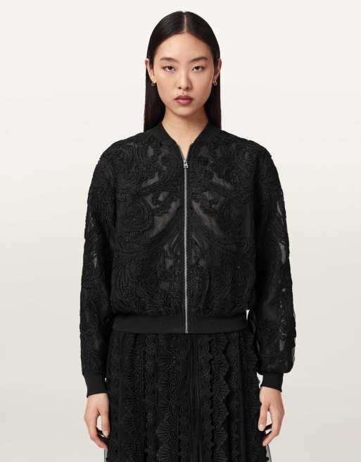 AllSaints – Jade – Verzierte Bomberjacke in Schwarz