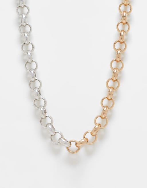 AllSaints – Kurze, grobgliedrige Kette in warmem Messing und Silberoptik