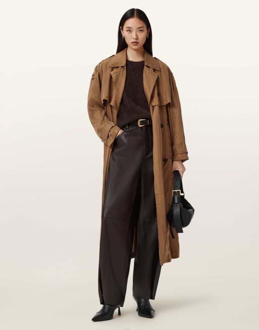 AllSaints – Linnie – Trenchcoat in Karamell-Kaffeebraun