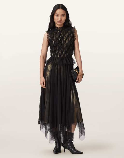 AllSaints – Lola – Tüllkleid in Metallic-Gold