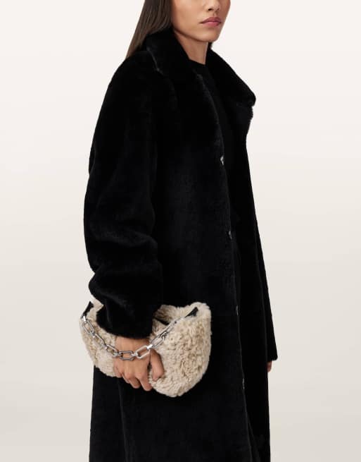 AllSaints – Madea – Mini-Lammfell-Tasche in Natur