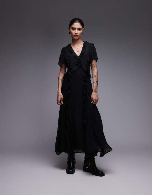 AllSaints – Mari – Maxikleid in Schwarz