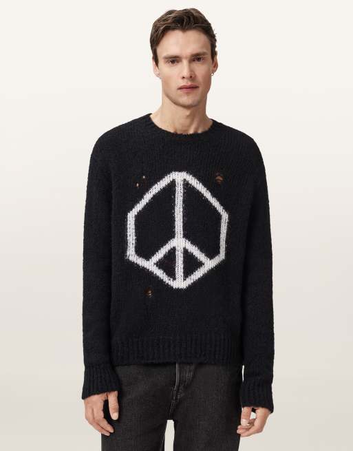 AllSaints – Message – Sweatshirt in Schwarz mit Rundhalsausschnitt