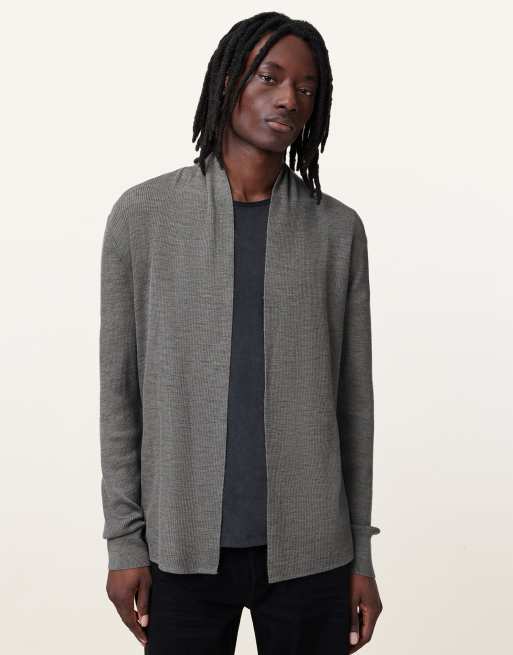 AllSaints – Mode – Offene Strickjacke aus Merinowolle in Monument-Grau