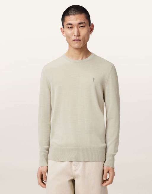 AllSaints – Mode – Sweatshirt aus Merinowolle in Pudergrün mit Rundhalsausschnitt