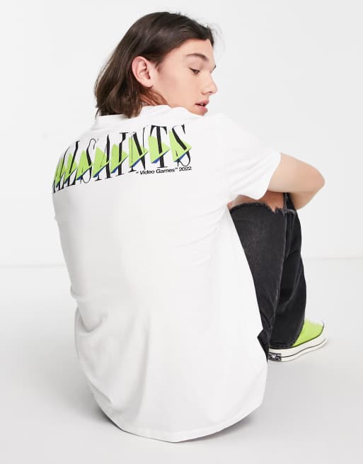 AllSaints – Momentum – T-Shirt in Weiß mit Rückenprint