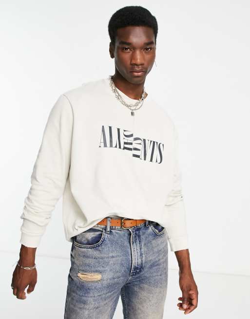 AllSaints – Neco – Sweatshirt in Cremeweiß mit Logo vorne