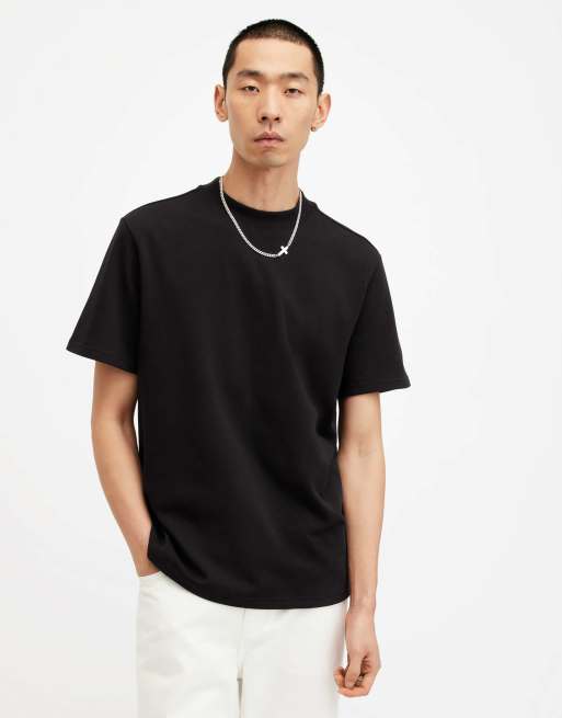 AllSaints – Nero – Kurzärmliges T-Shirt in Tiefschwarz mit Rundhalsausschnitt