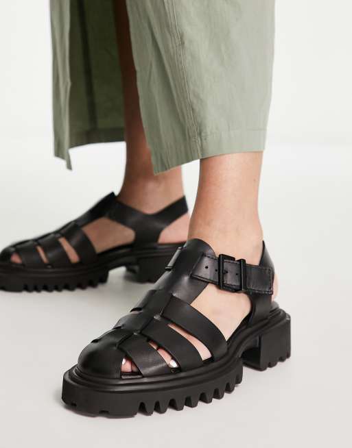 AllSaints – Nessie – Ledersandalen in Schwarz