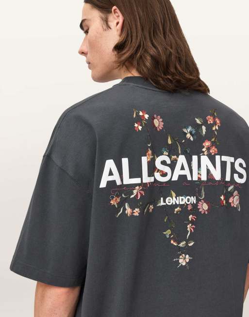 AllSaints – Pentacle – T-Shirt in verwaschenem Schwarz mit Rundhalsausschnitt