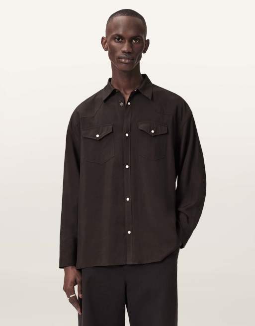 AllSaints – Pickett – Langärmliges Hemd in Braun