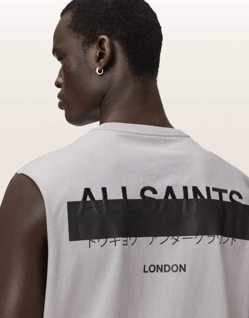 AllSaints – Redact – T-Shirt in Kieselgrau mit Rundhalsausschnitt