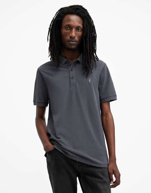 AllSaints – Reform – Kurzärmliges Polohemd in Schmiedeblau