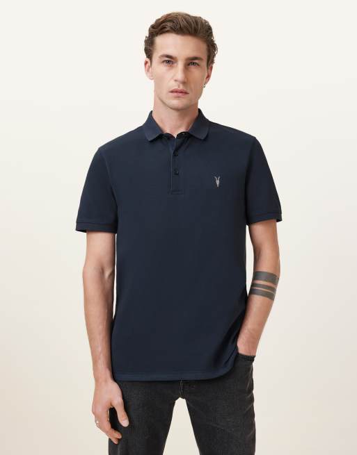 AllSaints – Reform – Kurzärmliges Polohemd in Weidenblau