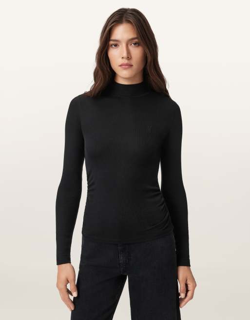 AllSaints – Rina – Langärmliges Oberteil in Schwarz mit Rollkragen