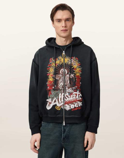 AllSaints – Roque – Kapuzenjacke in verwaschenem Schwarz