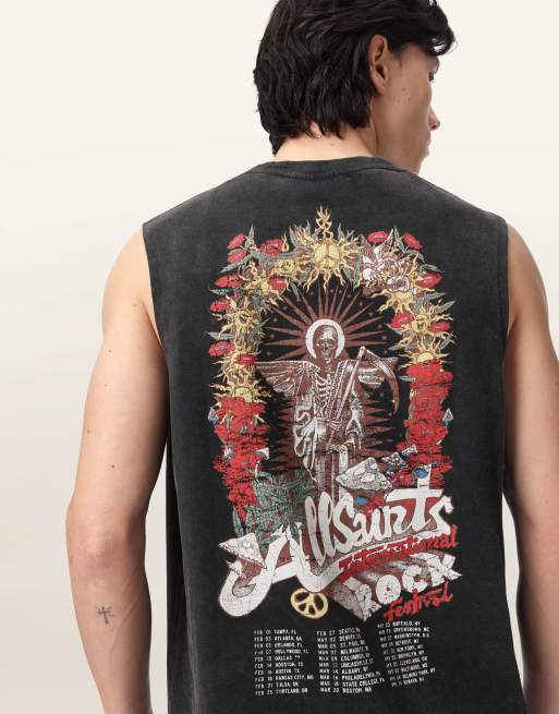 AllSaints – Roque – T-Shirt in verwaschenem Schwarz mit Rundhalsausschnitt