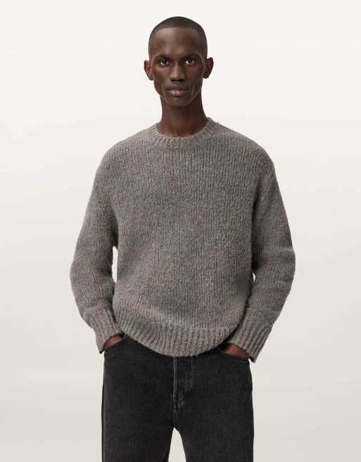 AllSaints – Saku – Sweatshirt in Metallgrau mit Rundhalsausschnitt