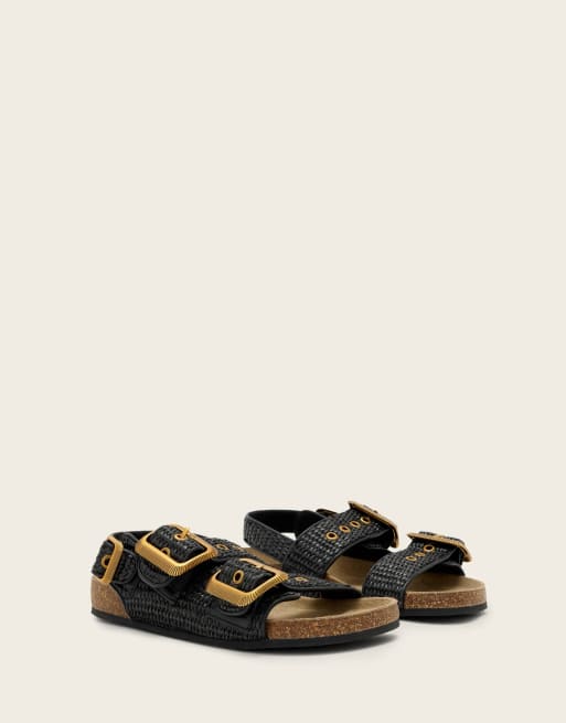 AllSaints – Staffa – Bast-Sandalen in Schwarz/Schwarz