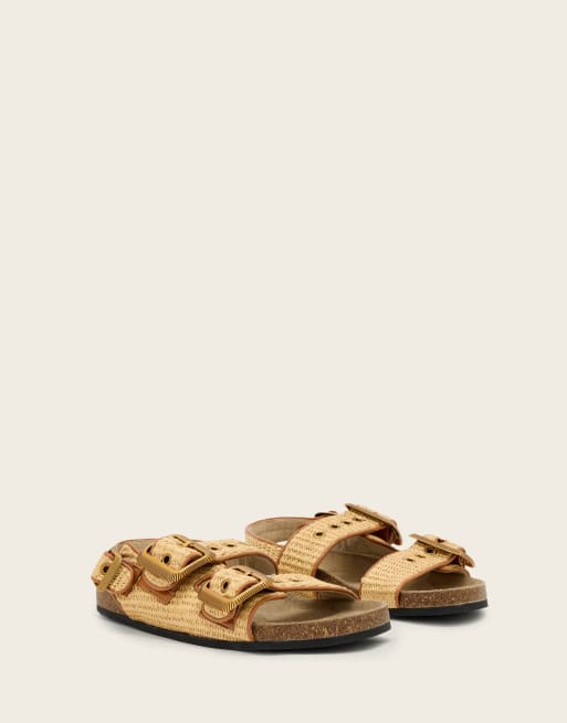 AllSaints – Staffa – Sandalen aus Bast in Naturbraun