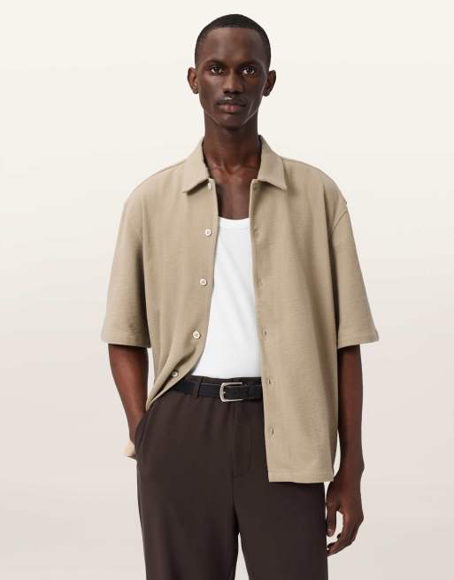 AllSaints – Stallone – Kurzärmliges Hemd in Dünenbraun