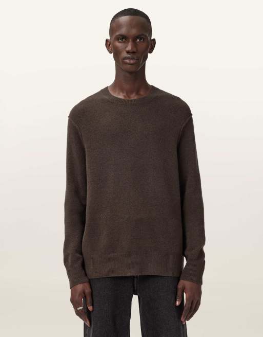 AllSaints – Statten – Sweatshirt in Maulwurfbraun mit Rundhalsausschnitt