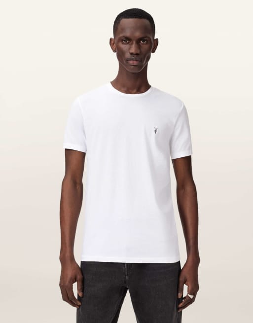 AllSaints – Tonic – 3er-Pack T-Shirts in Grau/Weiß/Grün mit Rundhalsausschnitt