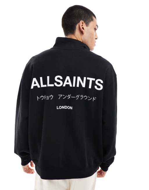 AllSaints – Underground – Sweatshirt in Schwarz mit kurzem Reißverschluss