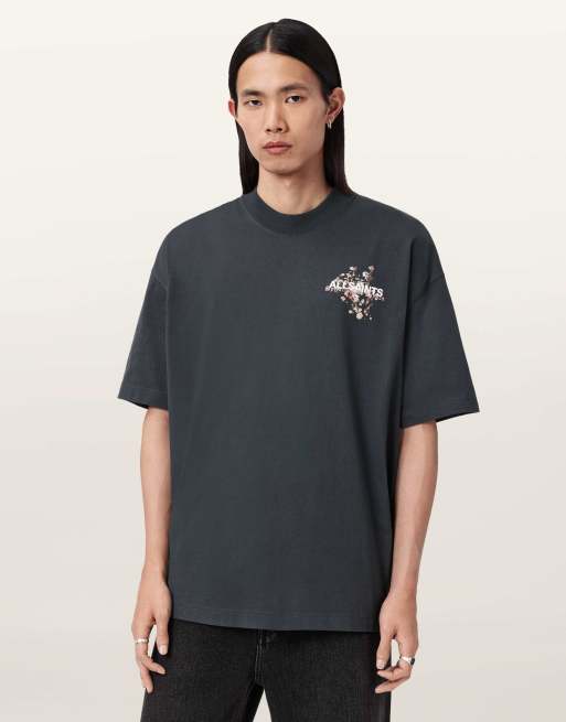 AllSaints – Valen – T-Shirt in verwaschenem Schwarz mit Rundhalsausschnitt